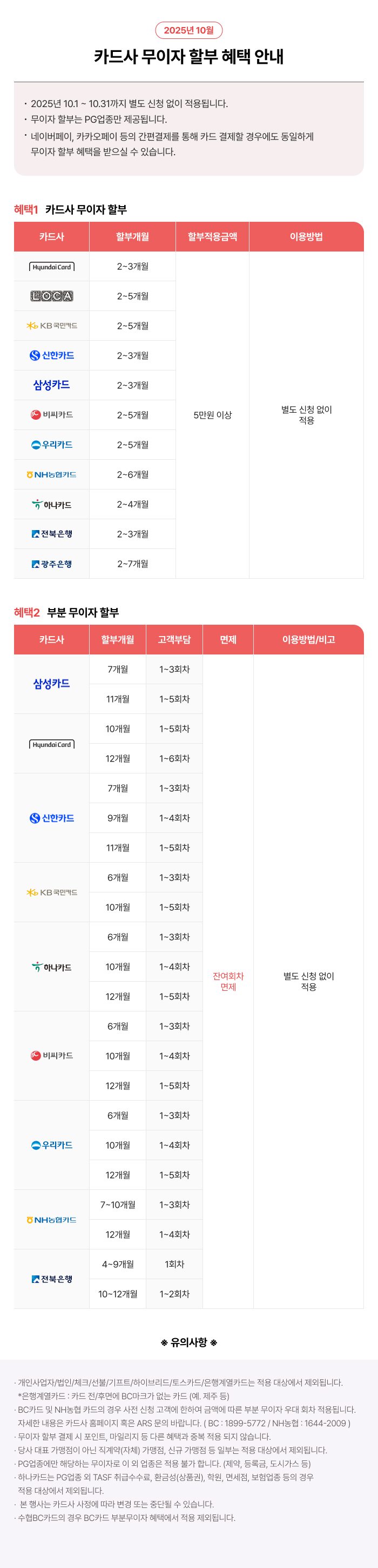 신용카드 무이자 할부 혜택