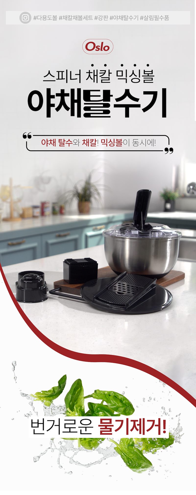 [쭌디x오슬로 야채탈수기 4차] 스텐304야채탈수기 + 채칼6종+공구전용이벤트 스텐볼 뚜껑 전구매자 증정!