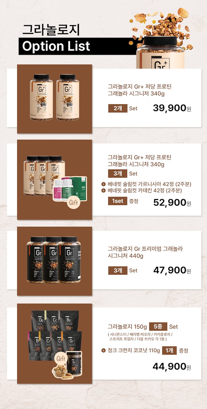 [그라놀로지] [무료배송] 그래놀라 1등 브랜드 / 국내최초!! 수제 비건 프리미엄 저당 프로틴 그래놀라 / 감미료, 착색료, 보존료가 없는 식물성 재료만을 사용한 NO 인공첨가물 / 그런데 너~~무 맛있어요!!