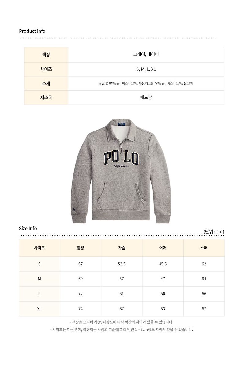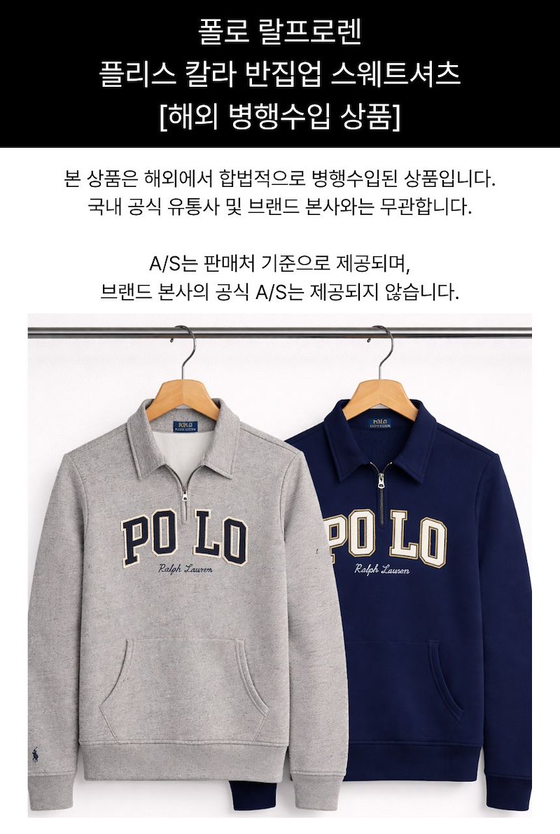 [진심디자인] 폴로 랄프로렌 로고 플리스 칼라 반집업 스웨트셔츠 2종