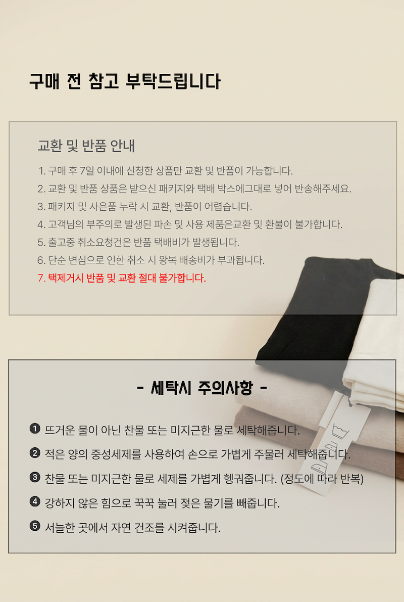 단순반품 및 단순교환은 입고 및 검수 후에 승인됩니다.