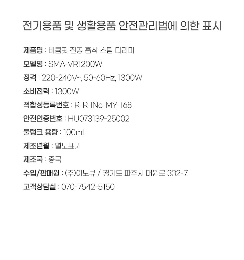 홈바이홈 바큠핏 진공 흡착 스팀 다리미