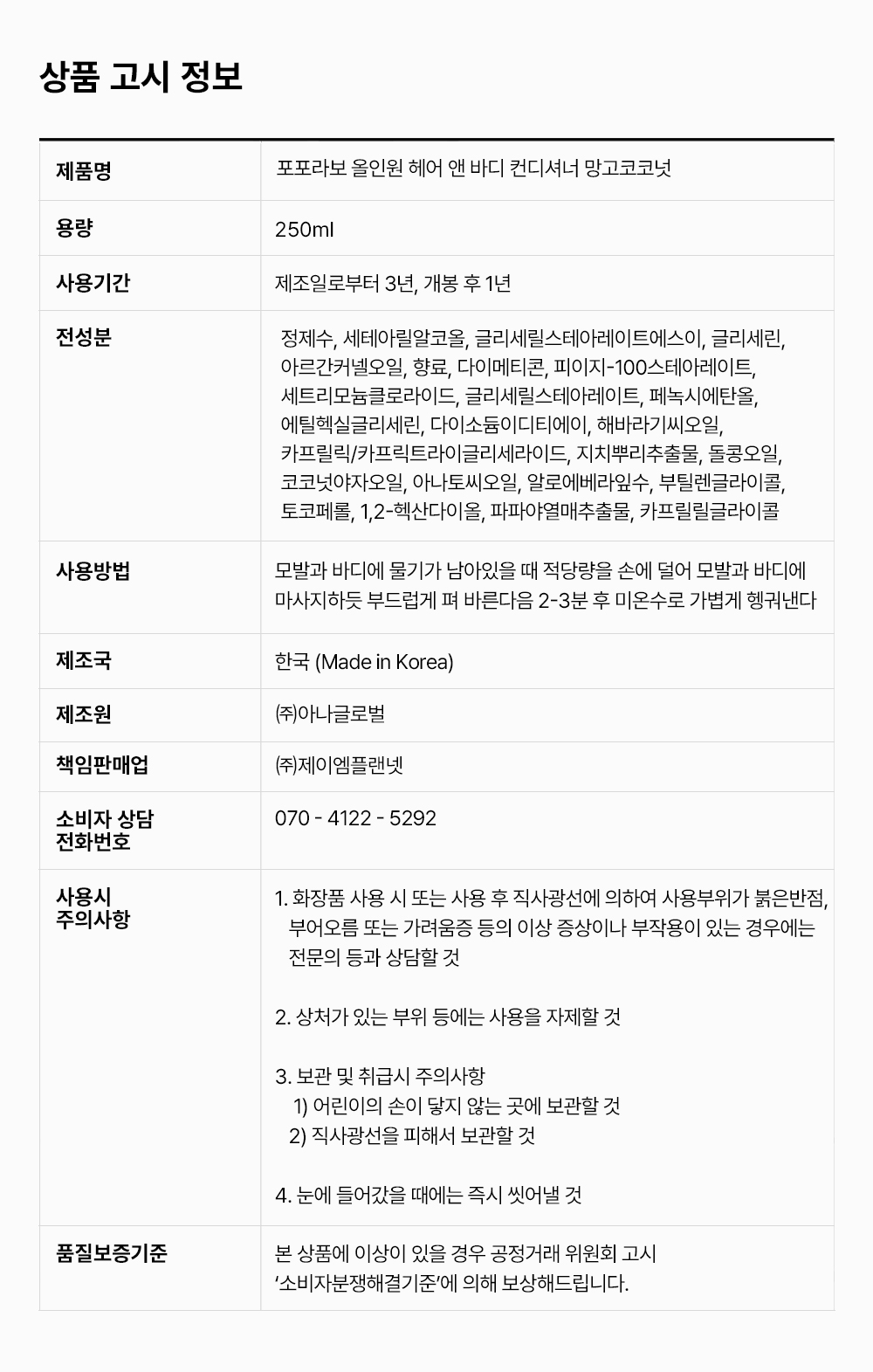 [올인원 컨디셔너 250ml] 2029-02-18