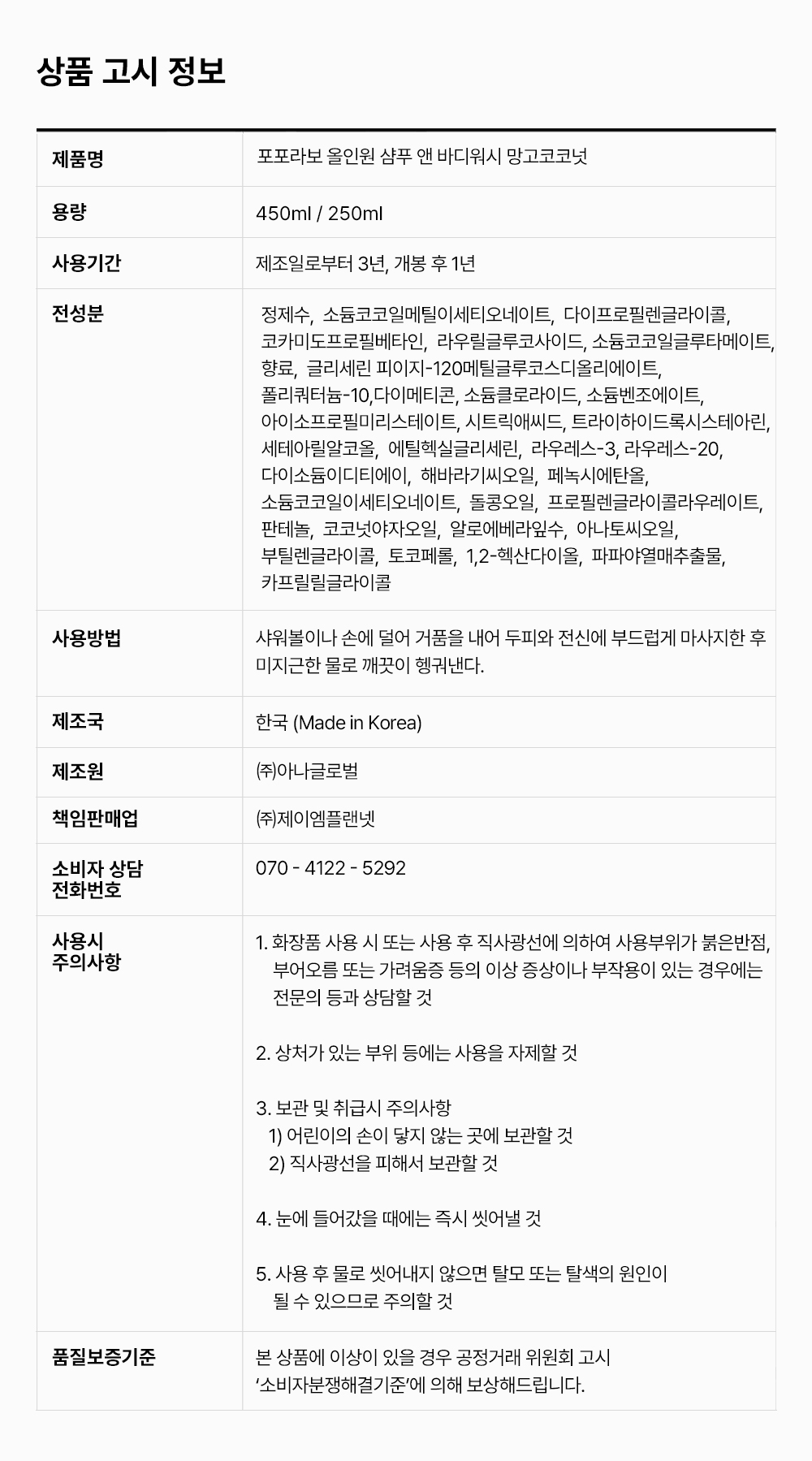 [올인원 샴푸 450ml] 2029-02-18
