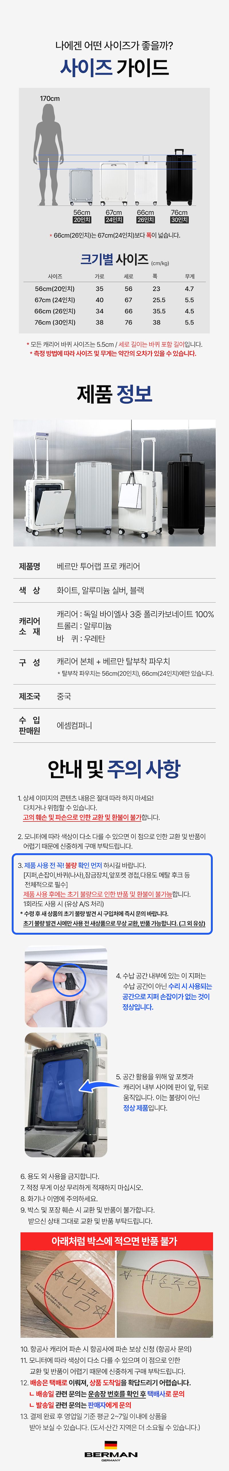 *26인치와 30인치는 화물전용으로 좀더 많은 짐을 넣으실수 있도록