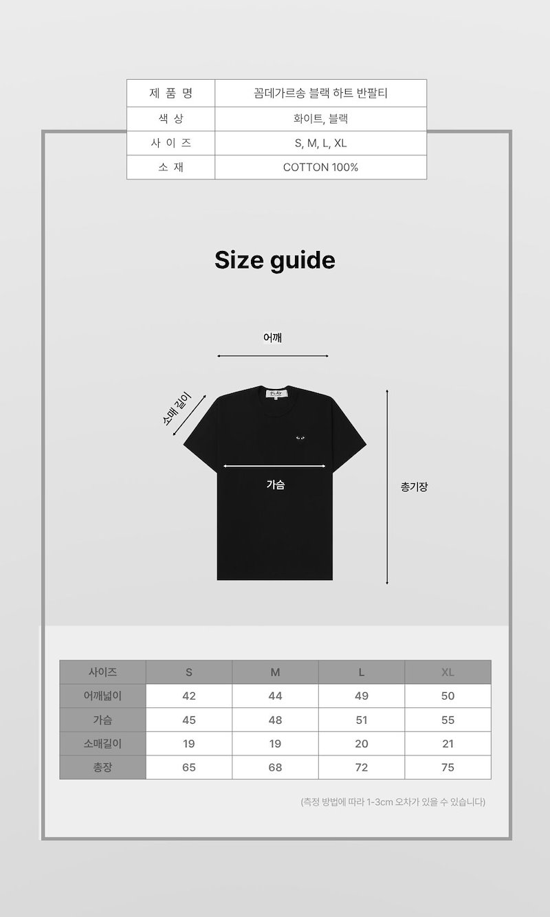 꼼데가르송 블랙 하트 반팔티