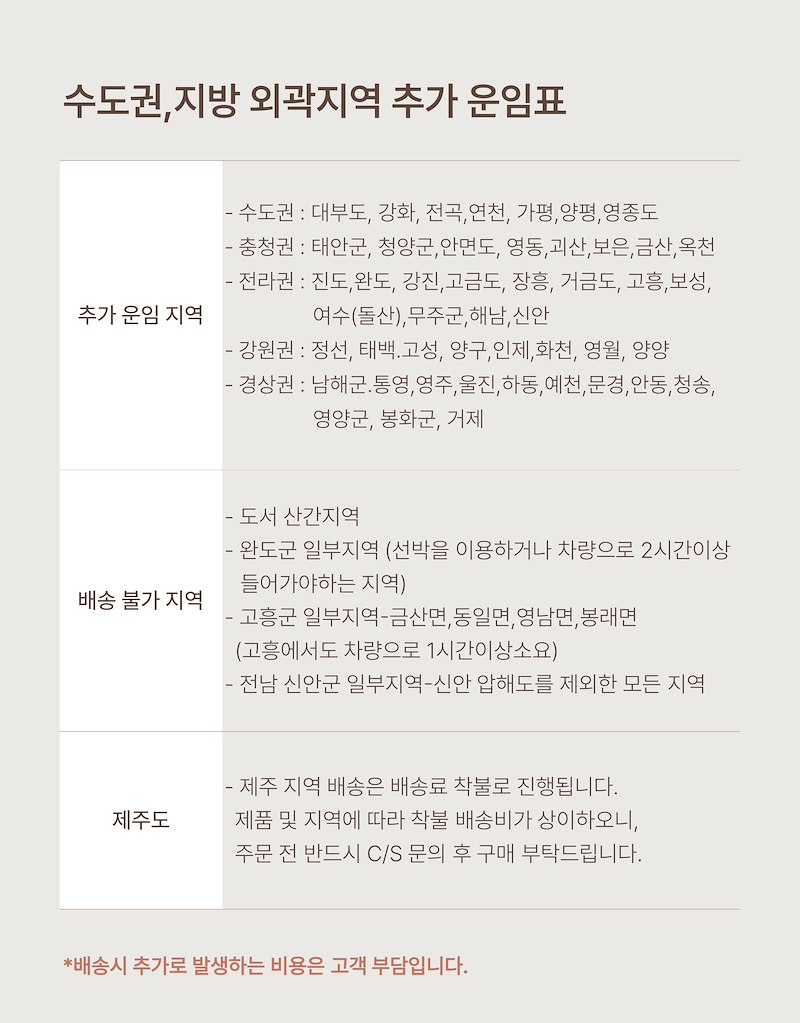 2. 도서산간지역 추가 택배 비용 3,000원이 넘는 지역일 경우