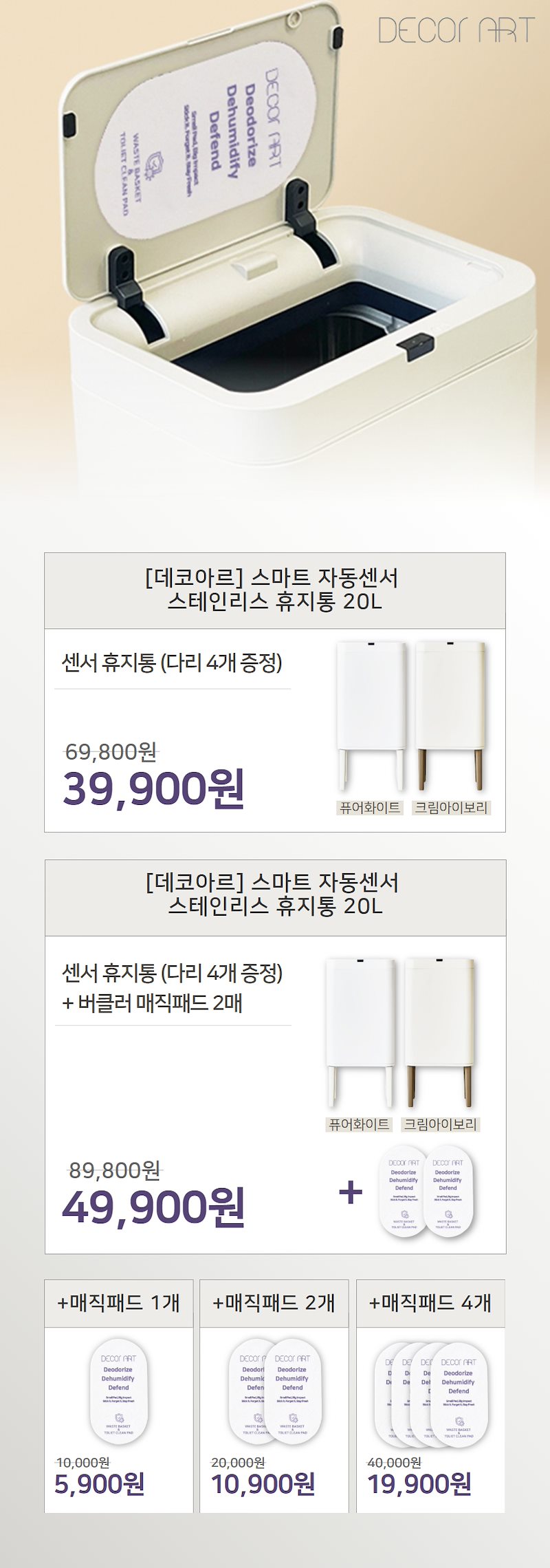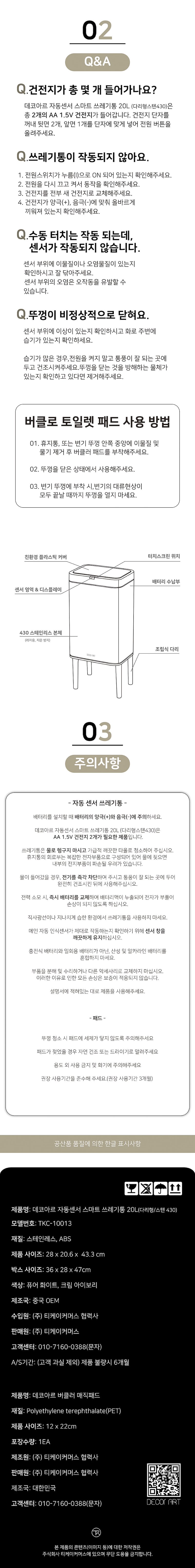 밀커블 X [데코아르] 스마트 자동센서 스테인리스 휴지통 20L