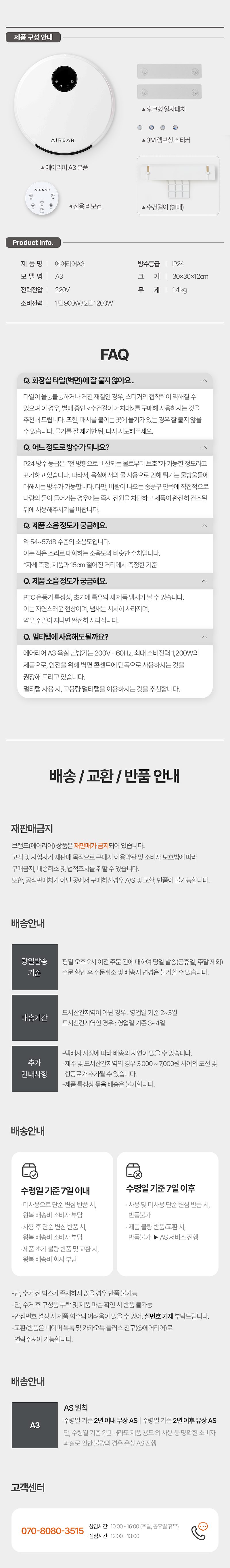 단순변심 교환/반품 배송비 : 욕실온풍기 10,000원 / 수건걸이 8,000원