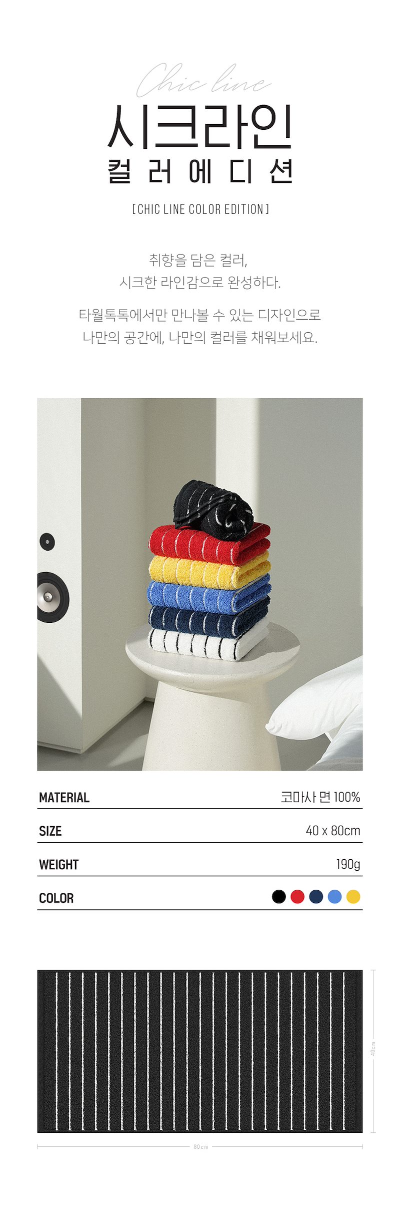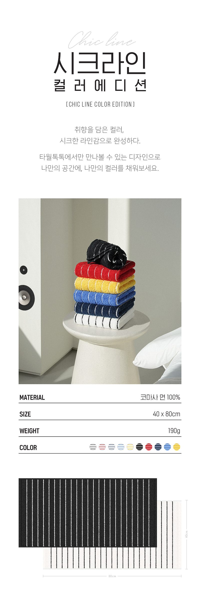 *1. 시크라인 190g 색상 (5장씩 묶음- 2번 톡톡40수와 교차선택가능 ->39,900원)*