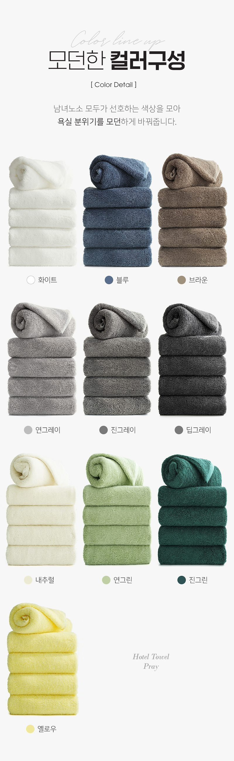 화이트, 블루, 브라운, 연그레이, 진그레이, 딥그레이, 내추럴, 연그린, 진그린, 옐로우