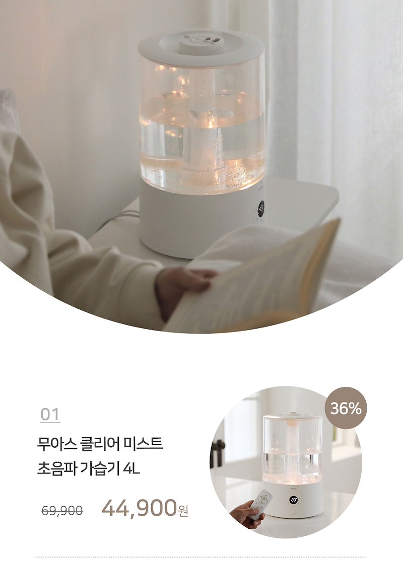 [비밀 특가] 무아스 클리어 미스트 초음파 가습기 4L
