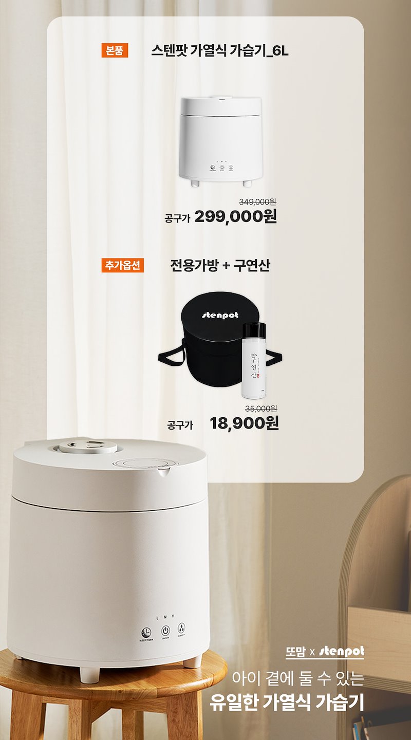 [ 또맘 X 스텐팟 ] 스텐팟 6L 대용량 스텐 가열식 가습기 O/P/E/N !!