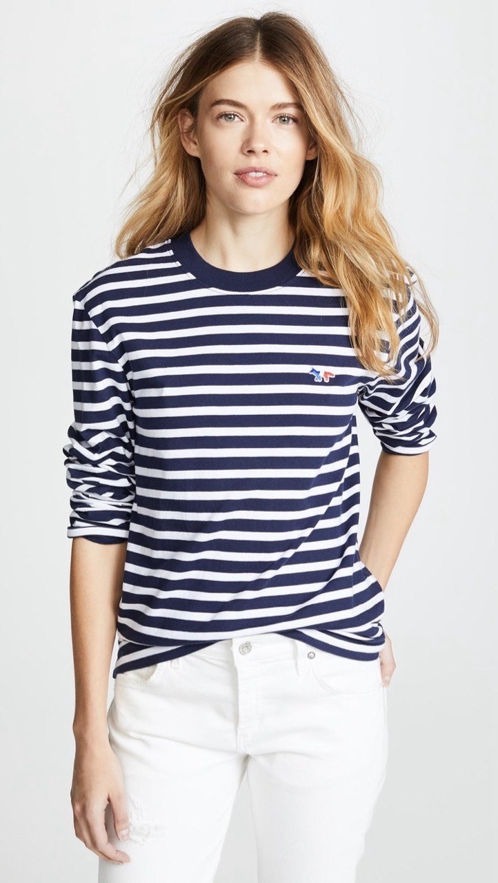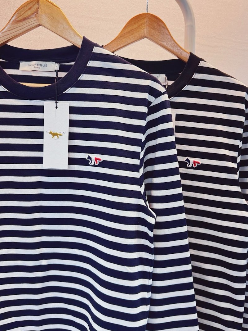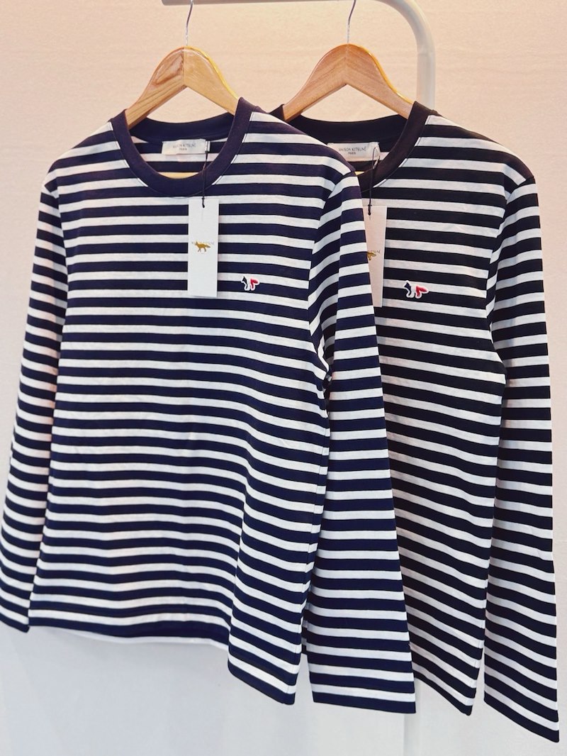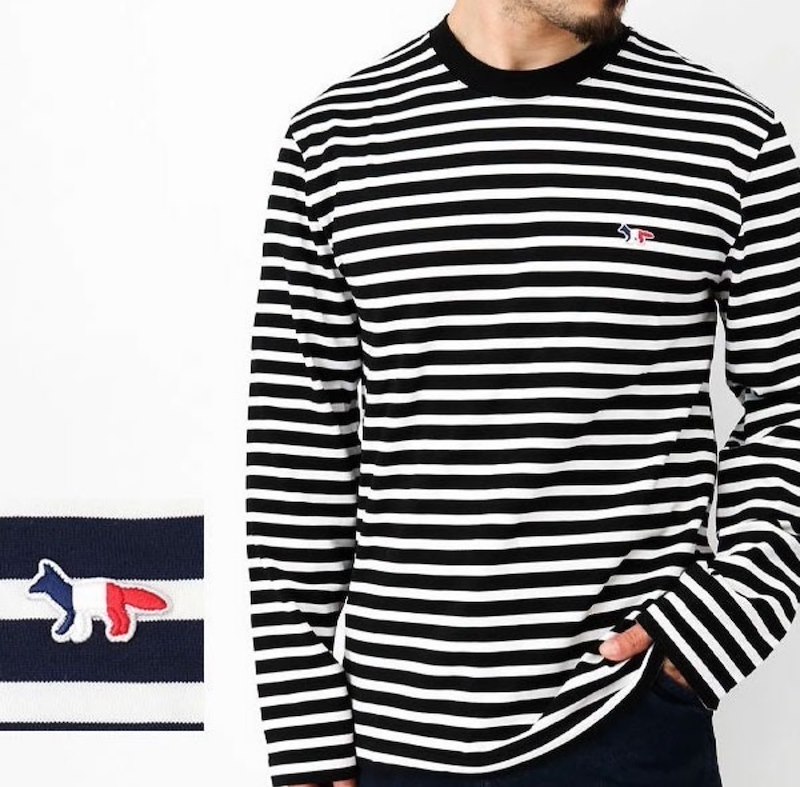 메종키츠네 남녀공용 폭스패치 스트라이프 긴팔티셔츠 (2컬러)