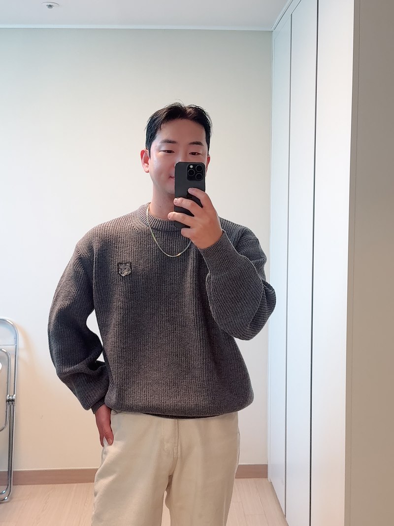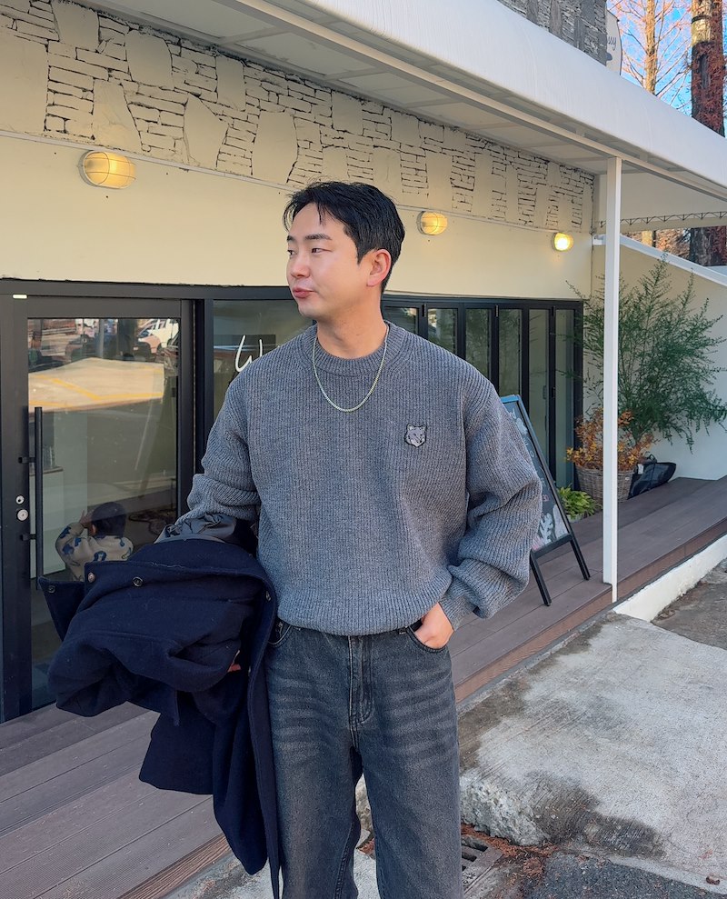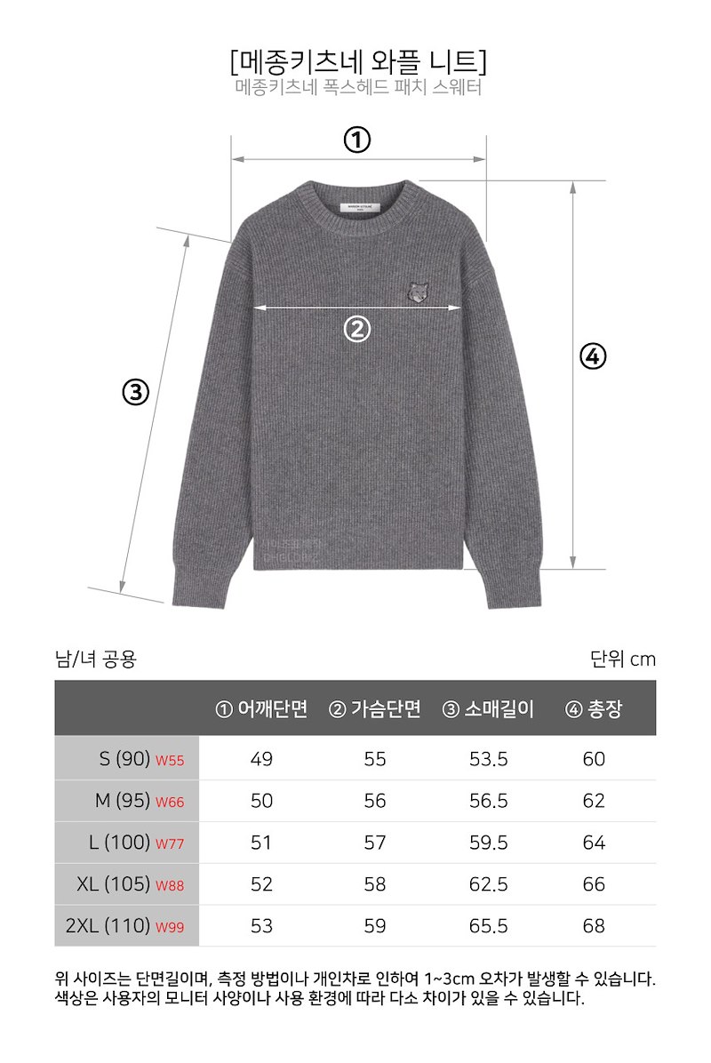 메종키츠네 폭스 헤드 패치 리브점퍼볼드 리브드 니트 남녀공용 (2컬러)